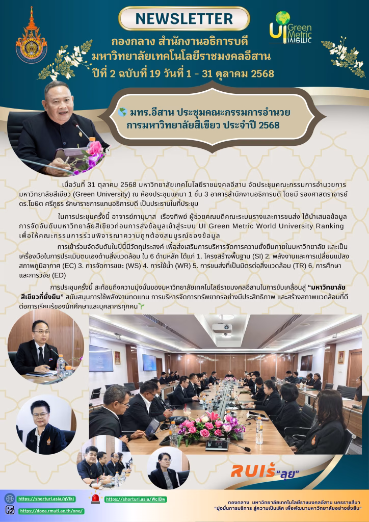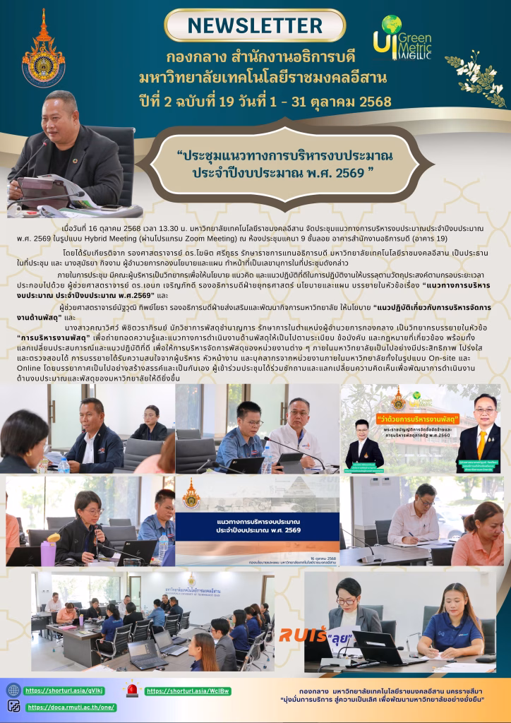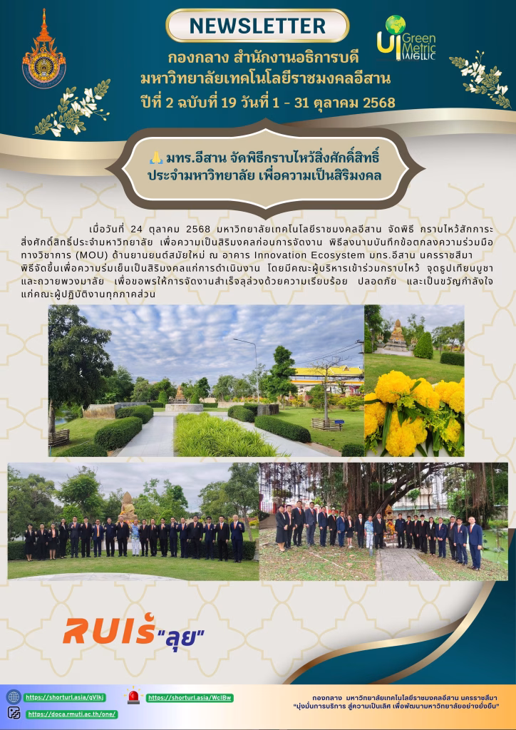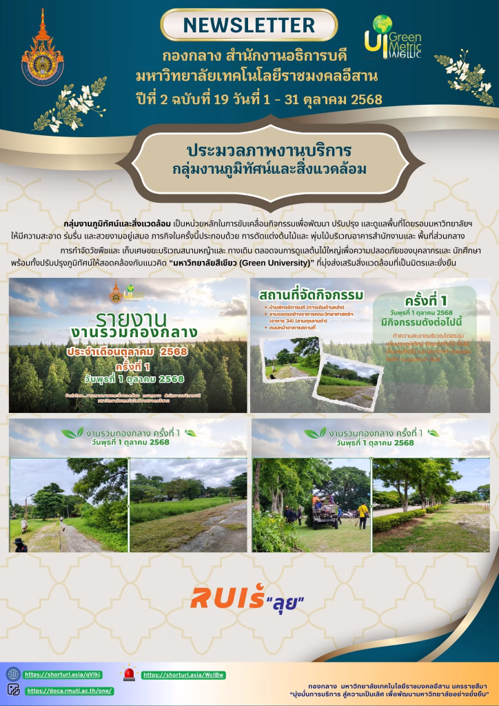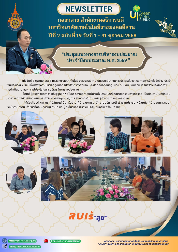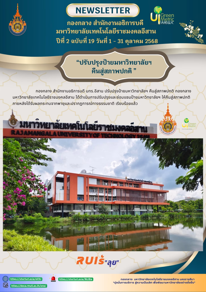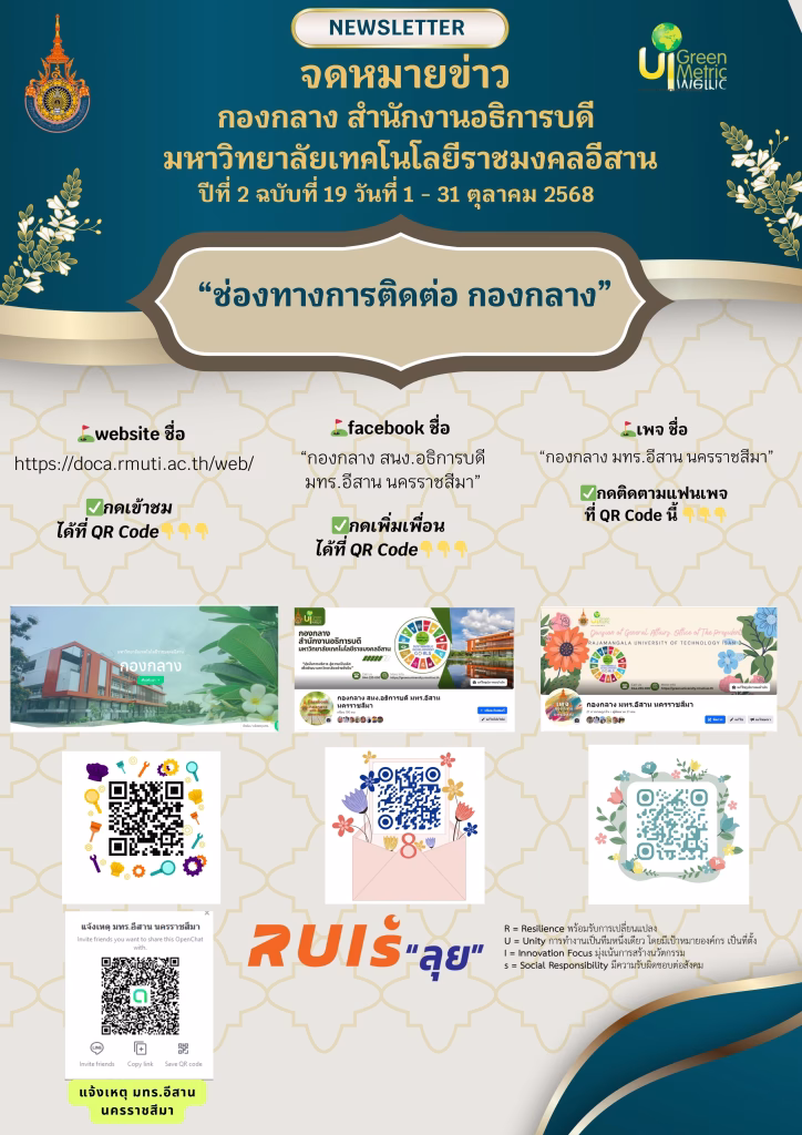 กองกลาง มทร.อีสาน เผยแพร่จดหมายข่าวประจำเดือนตุลาคม 2568